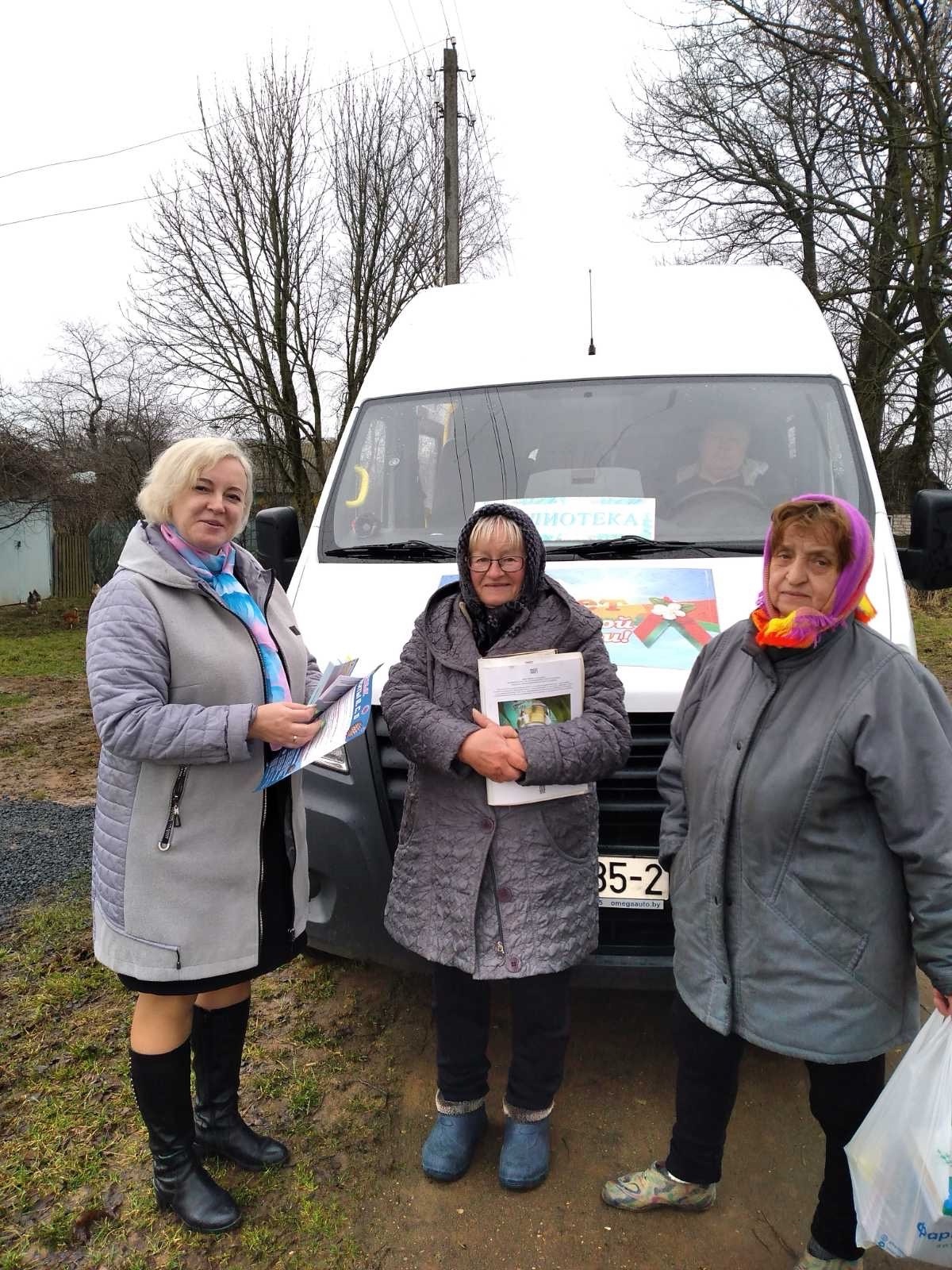 В рамках областного совместного проекта учреждений культуры по формам нестационарного обслуживания населения «Навстречу новым возможностям» помощник врача-эпидемиолога Жупикова М.М. и библиотекарь Витковская В.К. с помощью передвижной библиотеки – библиобуса Оршанской централизованной библиотечной системы 1 апреля отправились на встречу с жителями деревень Харьковка и Рюмино.