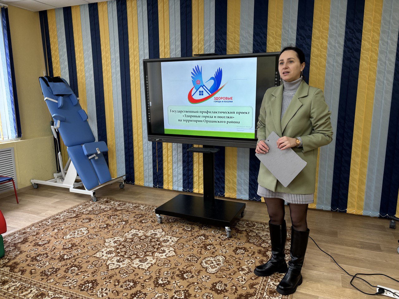 На сегодняшний день проект реализуется в 6 населенных пунктах. 20 февраля 2025 года с целью его продвижения на территории Оршанского района прошло выступление специалистов отдела общественного здоровья и СГМ перед коллективом ГУО «Центр коррекционно-развивающего  обучения и реабилитации». Были озвучены цели, задачи, основные принципы реализации проекта. Также акцент был сделан на развитие безбарьерной инфраструктуры как важный элемент в реализации проекта для лиц с особенностями развития. В ходе выступления затронулся раздел информационно-образовательной работы с населением, в том числе по принципу межведомственного взаимодействия. Коллективу ГУО «ЦКРОиР» наглядно продемонстрировалась продукция Оршанского хлебозавода с логотипом проекта на упаковочной продукции хлебобулочных изделий, сувенирная продукция и прочее.   В завершении специалисты ответили на все заданные вопросы по проекту.