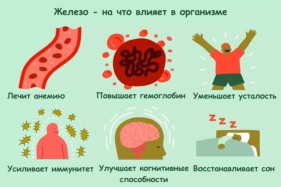 Железо — важный микроэлемент в организме человека. С помощью данного микроэлемента и входящего в его состав белкового соединения гемоглобина, наши органы насыщаются кислородом. Железо укрепляет иммунную систему, а эритроцитам помогает транспортировать углекислый газ в легкие. Двигаясь из легких, кислород поступает ко всем клеткам и тканям человеческого организма. Также минерал является частью элементов, отвечающих за холестериновый обмен, преобразования калорий в энергию.